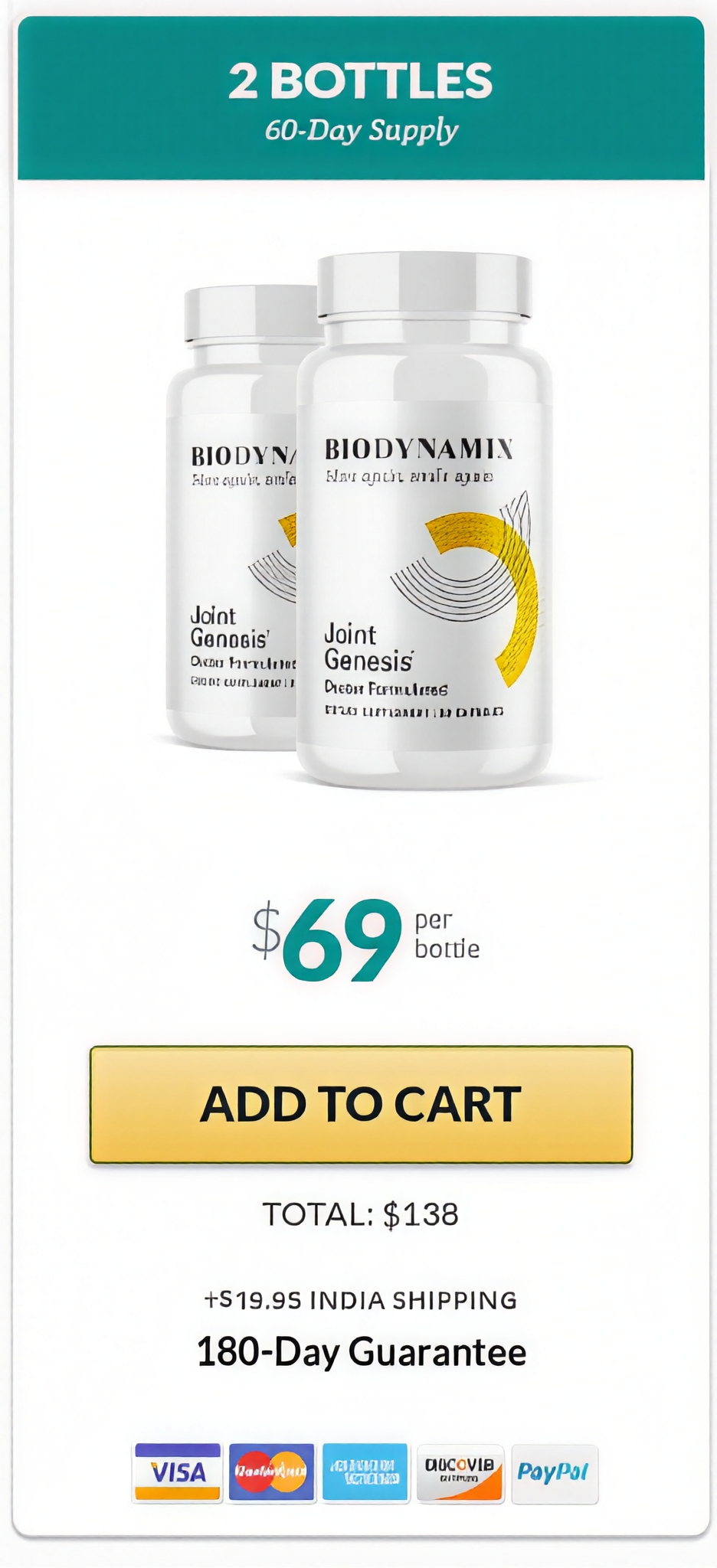 Joint Genesis is a dietary supplement designed to support joint health, reduce stiffness, and improve mobility, especially in people experiencing age-related joint discomfort. It is commonly marketed as a natural solution for people who suffer from knee pain, joint stiffness, or reduced flexibility due to aging, lifestyle, or physical strain.
